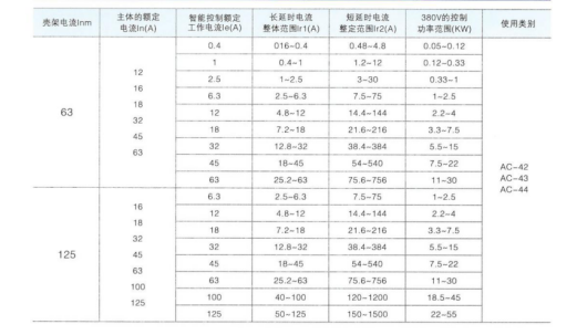 主電路主要由主體和智能脫扣器構(gòu)成,這兩部分是構(gòu)成可以應(yīng)用的CPS產(chǎn)品的最少配置。 主體額定電流in、約定發(fā)熱電流Ith、額定絕緣電壓U額定頻率、額定工作電壓Ue以及 可選的智能控制器的額定工作電流le范圍或控制功率范圍見表。
